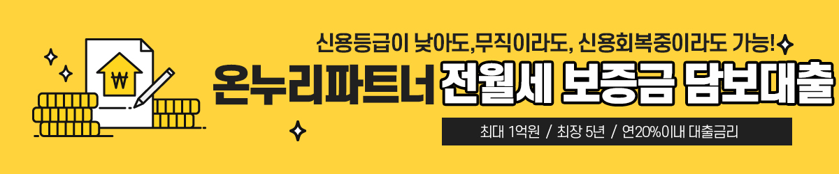 상호명 : ㈜온누리파트너스대부/대부중개 / 대표 : 김영민 / 개인정보관리책임자 : 김영민 / 사업자번호 : 410-86-74080 / 대표전화 : 1644-0396