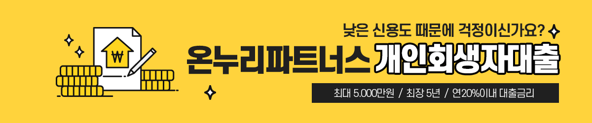 상호명 : ㈜온누리파트너스대부/대부중개 / 대표 : 김영민 / 개인정보관리책임자 : 김영민 / 사업자번호 : 410-86-74080 / 대표전화 : 1644-0396